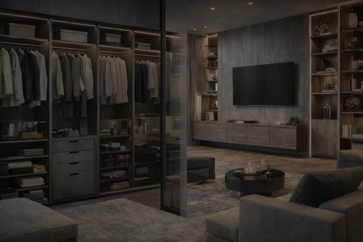 We specialise in bespoke interiors, custom-built wardrobes, modern aluminium or stainless-steel kitchens, advanced 3D visualisation, walkthrough tours, and lighting optimisation — delivering refined, high-end spaces from concept to execution.